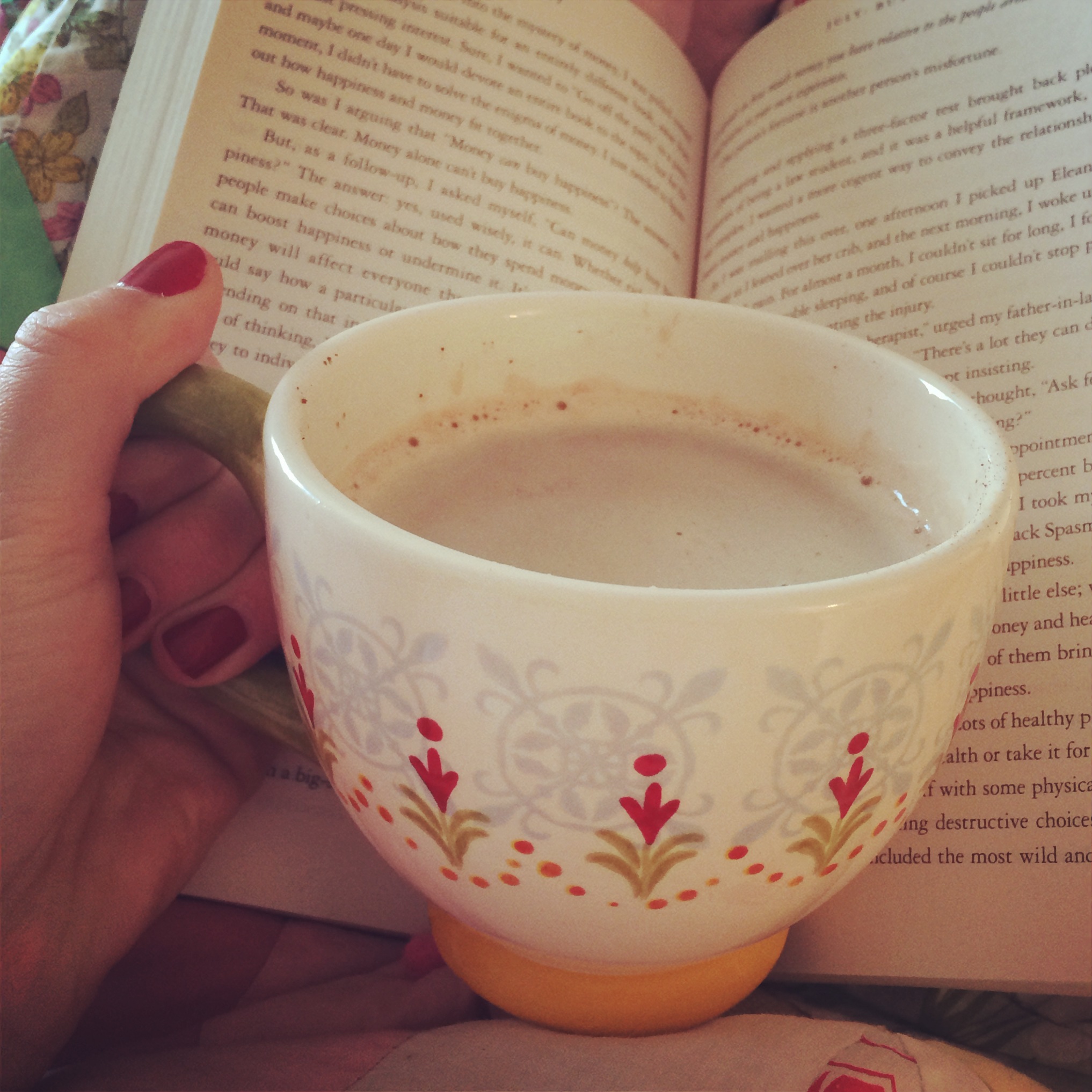 {Keeping warm during the polar vortex with a cup of hot chocolate and a good book}