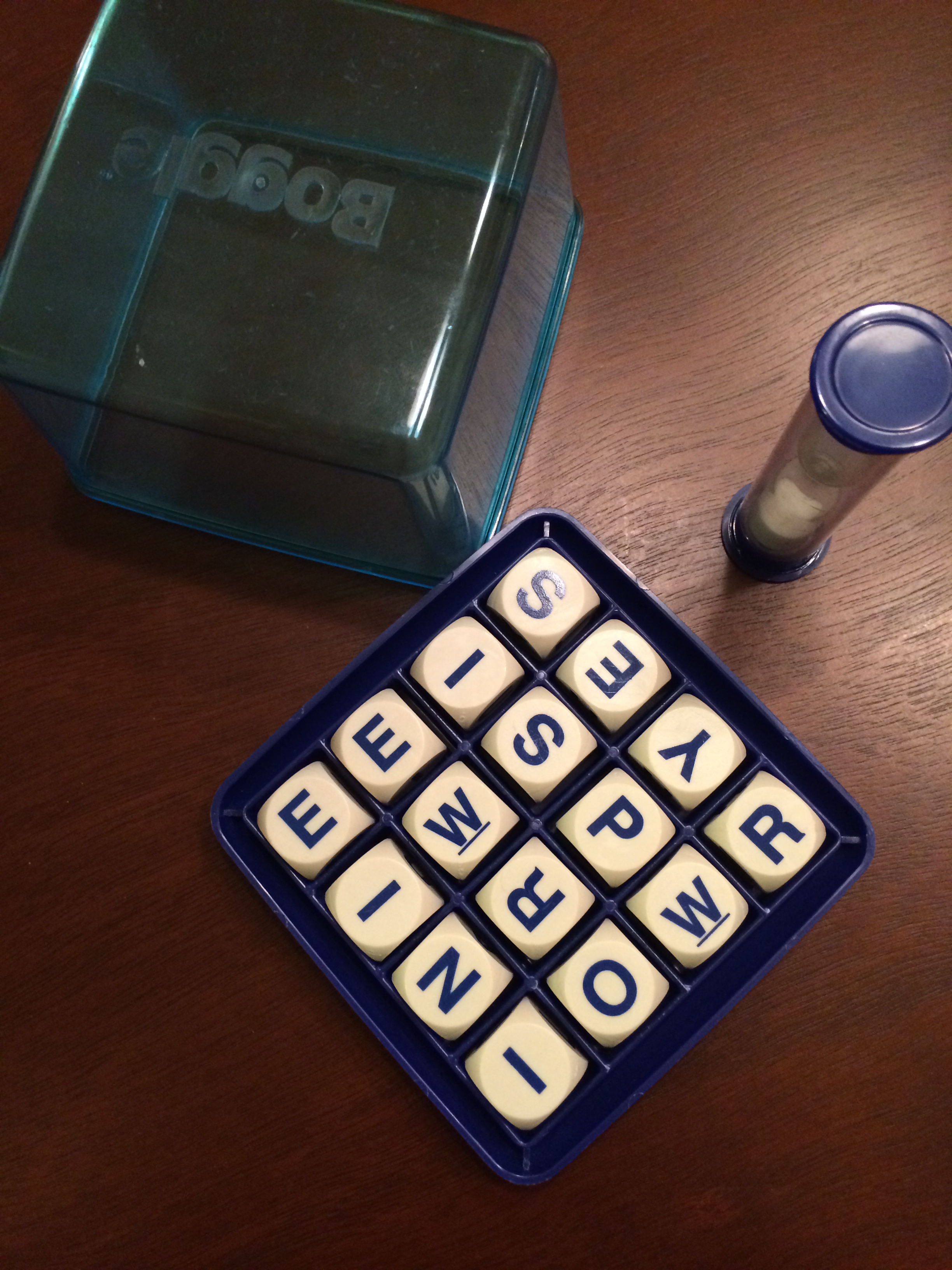 {Ian & I became very competitive over Boggle. Sadly, I only won once.}