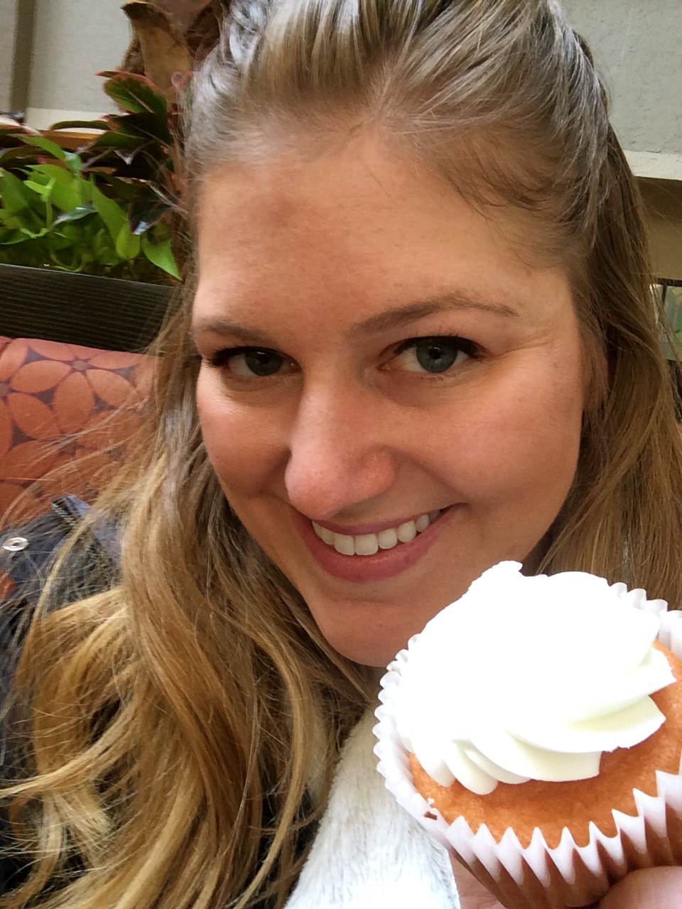 {Enjoying a Strawberry Margarita cupcake at the farmer’s market}
