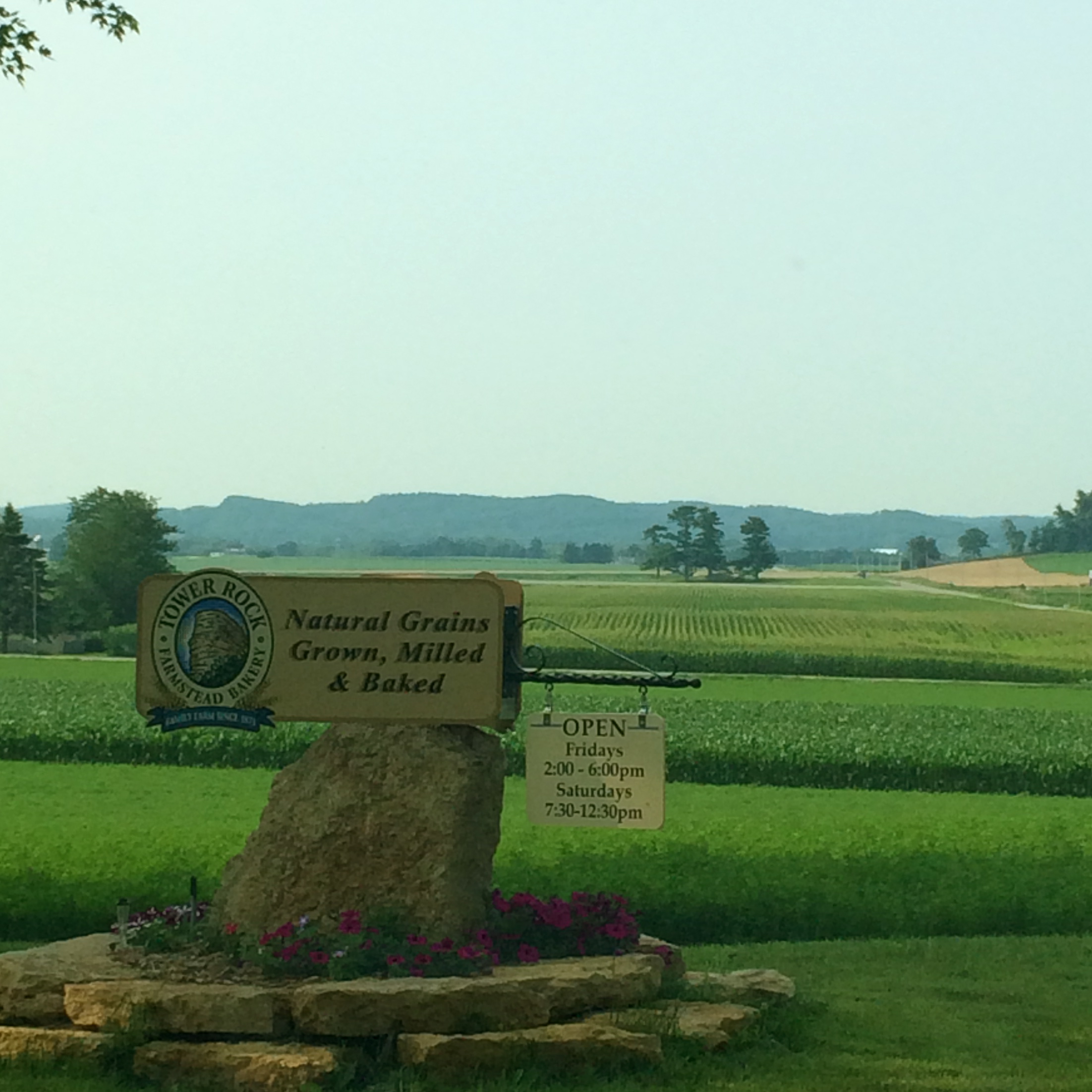 On a recent trip back home we woke up early and made the scenic country drive to the Tower Rock Farmstead Bakery. It is a quaint little bakery nestled between acres of farm land and the picturesque rock formations. We made quite a haul, bring home muffins, cookies, and cinnamon rolls for the family. My favorite purchase was homegrown and milled pastry and bread flour. For a few dollars above what you would pay at the grocery store, I was able to bring home locally grown flour. If you are ever in the Sauk City area, this is a must!