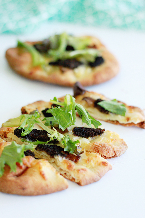 I was lucky to be home one weekend when my dad was harvesting the morel mushrooms and I was able to sneak away with a few. I had never cooked anything with morels before, but I thought they would make a delicious flatbread. And boy, did they ever!