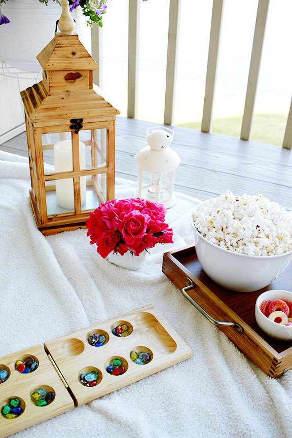 Ian and I have been trying to make the most of the warm weather by eating dinner outside, lounging by the pond reading, or taking our board games outside for a sunset game night. I love that a simple change of scenery can make an ordinary activity feel fresh and exciting. Next outdoor activity? Movie night! I’m already excited about making our little den outside on the patio to get cozy and watch a movie on our iPad.