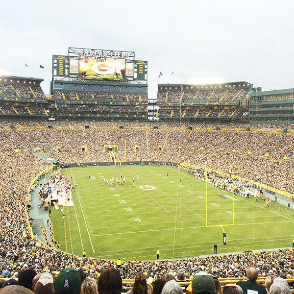 After a few days to recuperate from our wedding weekend adventures, Ian and I donned our green and gold for a preseason Packer game! I’m not a huge sports fan, but I can get behind anything that serves hot chocolate. So while it drizzled during the second half of the game, I was snuggled inside my rain coat sipping my drink. Overall, I would say the outing was a success!