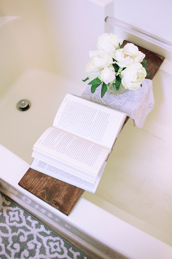 One of my favorite ways to pamper myself is to draw up a warm bubble bath. Paired with relaxing music, a few candles and a good book – this is the perfect environment to reenergize. In the past, I placed a lot of faith in my ability not to get my book wet or drop it in the tub, and luckily I never had any major incidents! However, this always caused a small amount of stress in what was supposed to be a relaxing experience. So I scrolled around the internet and found the perfect solution – a bath tray!