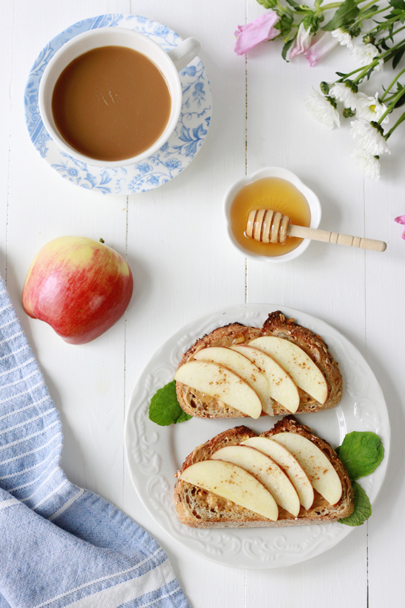 After dancing the night away at a wedding I woke up yesterday craving a simple, low-key breakfast. We have made a tradition out of leisurely eating pancakes on Sunday mornings, and I have fallen in love with this routine. However, I wasn’t in the mood to pull out the griddle and deal with all the clean-up. Therefore, I decided to take something simple, like toast, and spice it up with toppings to make this ordinary breakfast feel special.