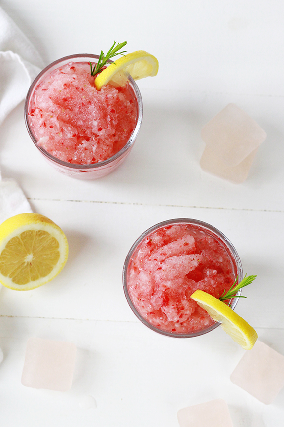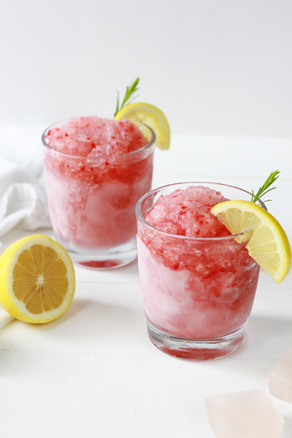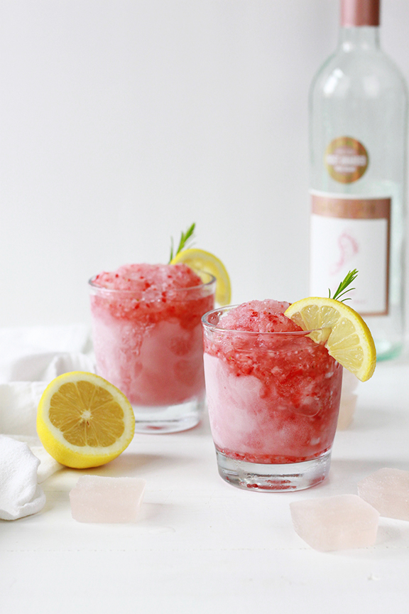 - Blend the Rosé ice cubes with fresh strawberries until it reaches slushy consistency