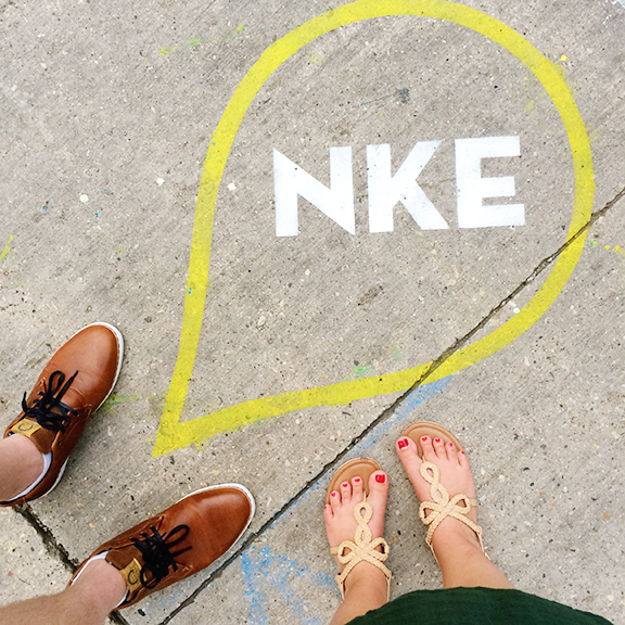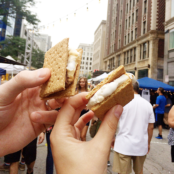 One Wednesday night I had to sweet talk Ian into missing his kickball game so we could attend the NEWaukee Night Market. I had heard many amazing things about this downtown market and it didn’t disappoint. The street was covered with twinkle lights, filled with craft vendors, and best of all – had fire pits to roast s’mores!