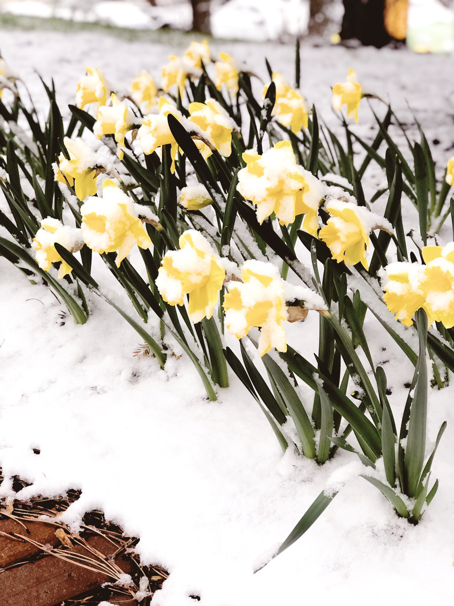 It’s clear that I have a deep love for flowers, therefore, it comes as no surprise that I was delighted to see blooms start peeking out of the ground this month. Luckily, these are hearty flowers since they had to endure a few snow storms in April. I don’t know if there is anything that sums up spring in Wisconsin more than the sight of daffodils covered in snow.