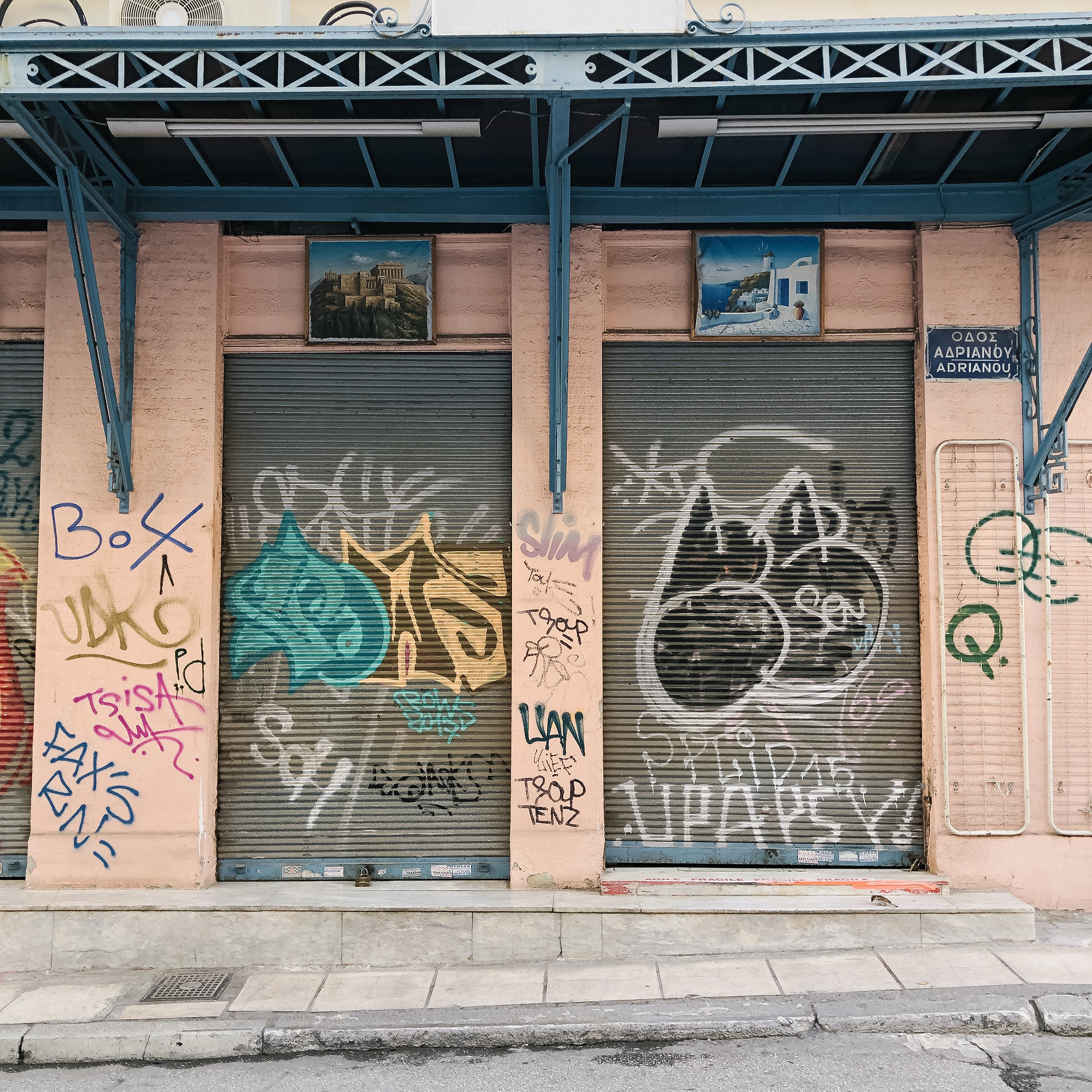 We kicked off our Athens leg of the trip strolling around the alleyways near our hotel. To our surprise, most of the city is covered in graffiti. Locals say they barely recognize the graffiti anymore, but as a tourist it was very prominent. However, all of the vine covered alleyways that were home to restaurants and shops added a bit of charm to the street art.