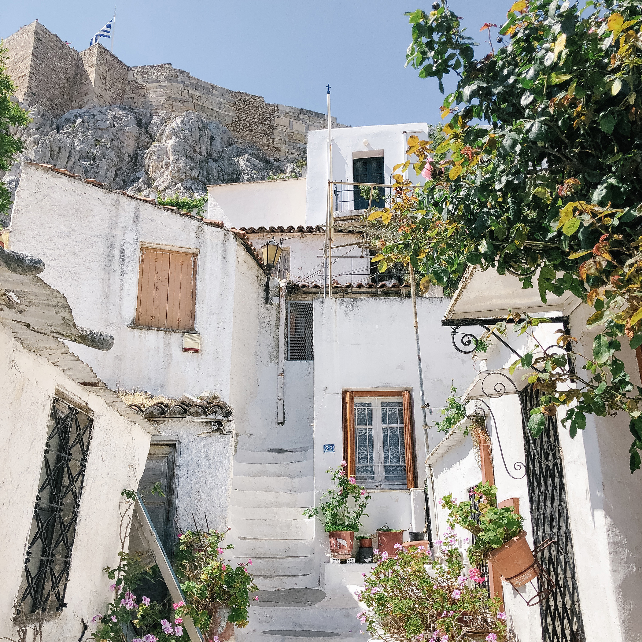 As the crowds started to flood the Acroplois, we headed off to burrow our way through the narrow streets that lead to the Anafiotika neighborhood. This area of Athens is nestled beneath the Acropolis and has been coined a little Greek island within the city. Some of the alleyways were so narrow we had to shuffle through them sideways, but this all added to the charm of this little city oasis.