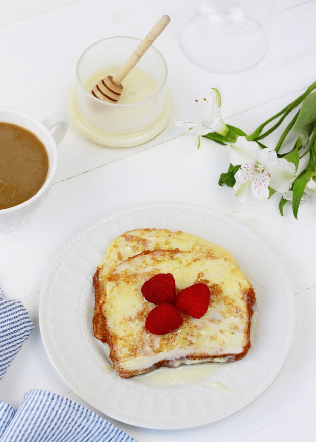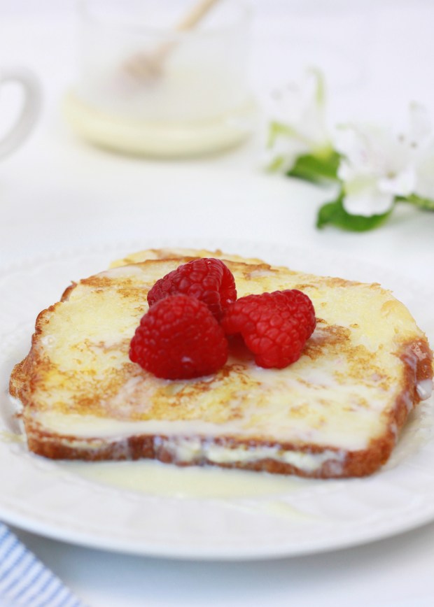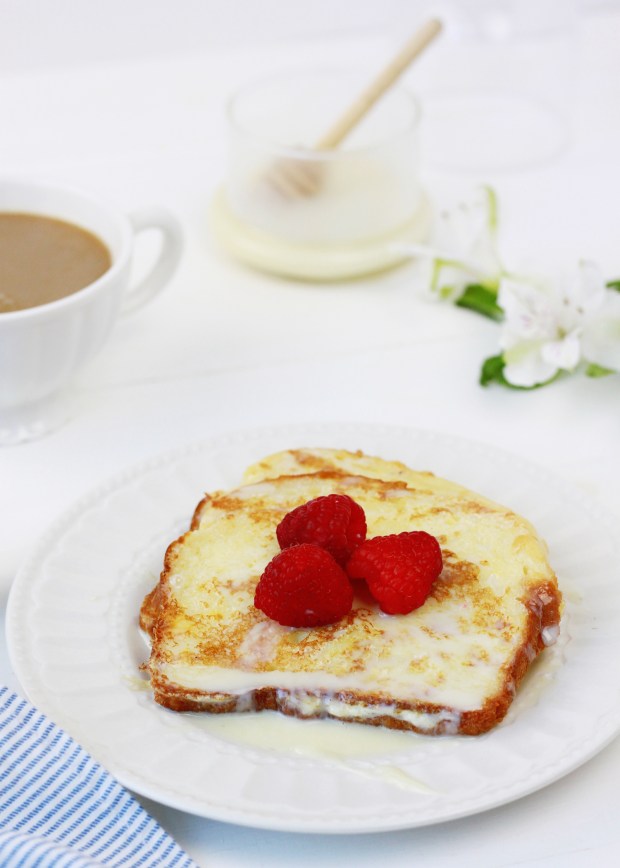 Rumor has it, milk bread is traditionally served with sweet and condensed milk. Apparently, the Japanese use this as a spread rather than a baking ingredient. I’m always fascinated by these cultural differences! To add our own spin on this milk bread, we decided to turn it into french toast. With a drizzle of sweet and condensed milk and a few fresh raspberries, this dish was well worth the hours spent in the kitchen.