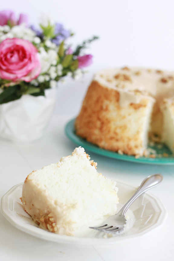 Maple Bourbon Walnut Angel Food Cake